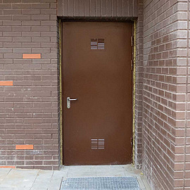 Если глухая металлическая дверь кажется вам скучной, выберите дверь с остеклением, вентиляционной решеткой или фрамугой.