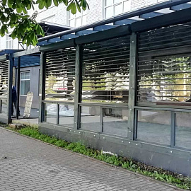 Перейти в каталогМы вносим свой вклад в порядок на улицах. Что, как не козырек, обеспечит защиту от ветра и разлетания мусора? Сама конструкция выглядит эстетично и прослужит долго.