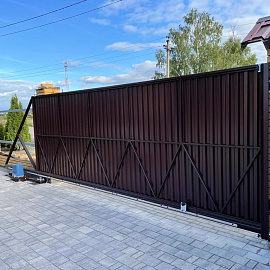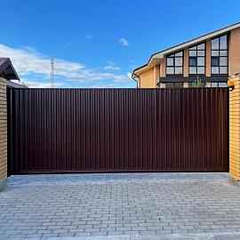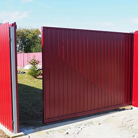Перейти в каталогВы можете выбрать глухое полотно, или полотно с калиткой. Мы также предлагаем выбрать один из вариантов окрашивания по каталогу RAL.