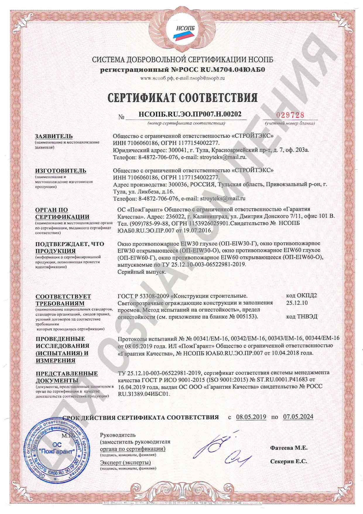 Изделия прошли испытания на огнестойкость, соответствуют всем ГОСТам и ФЗ.